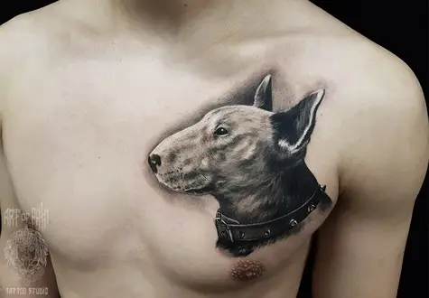 Татуировка мужская реализм на груди бультерьер 1871