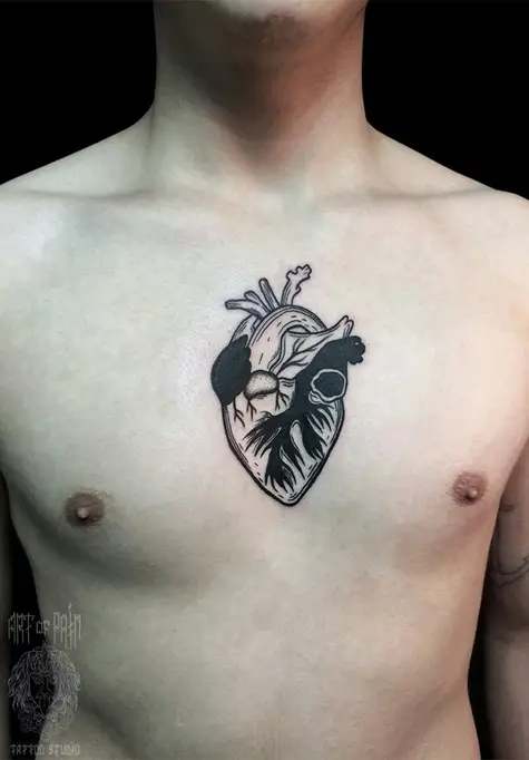 Татуировка мужская графика на груди реалистичное сердце 1882