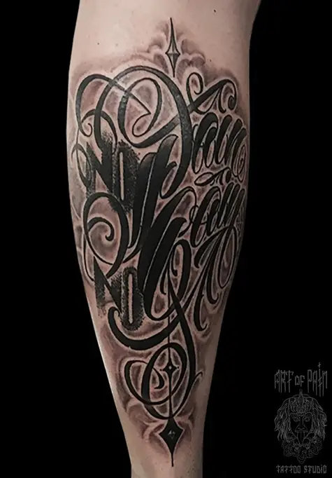 Татуировка мужская чикано на голени надпись 1900