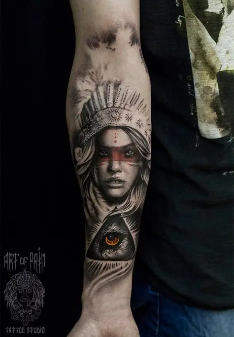 Татуировка мужская чикано на предплечье скво (Слава Tech Lunatic) 1960