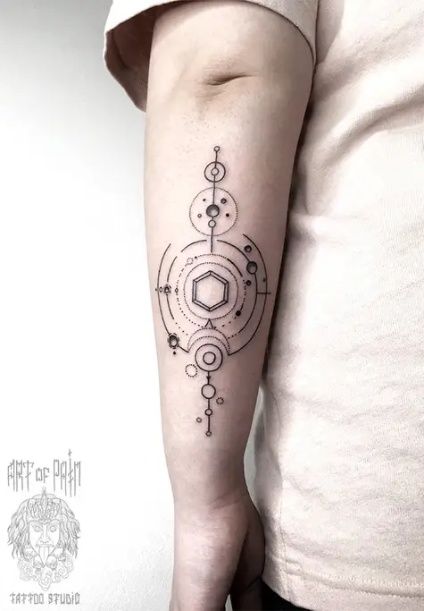 Татуировка мужская графика на предплечье (сзади) геометрия 2003
