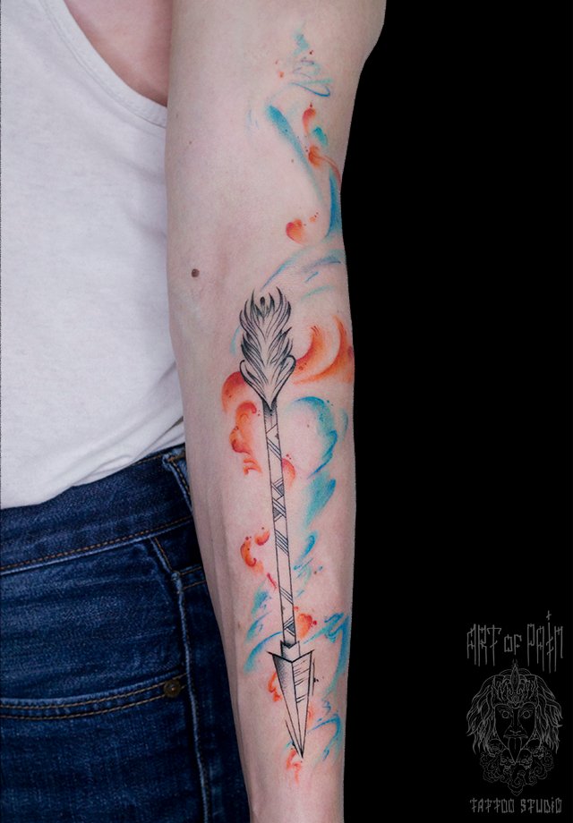 Татуировка мужская акварель на предплечье стрела 2025