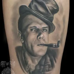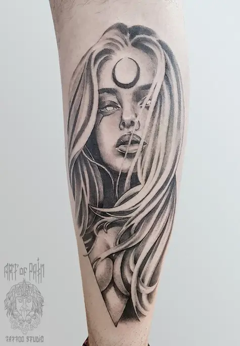 Татуировка мужская реализм на голени девушка 2038
