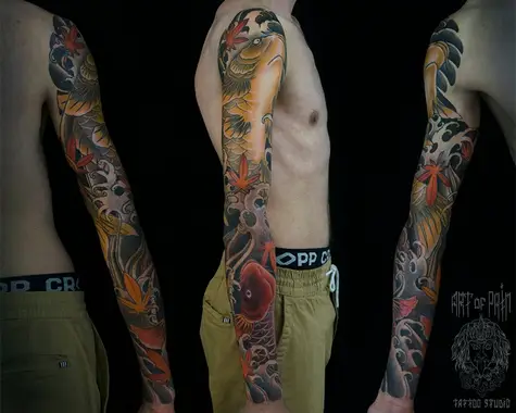 Татуировка мужская япония тату-рукав карп кои 2078