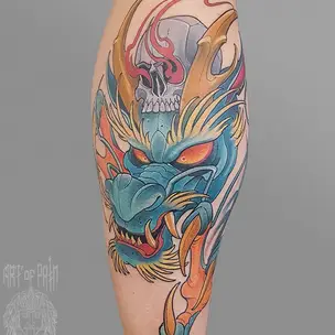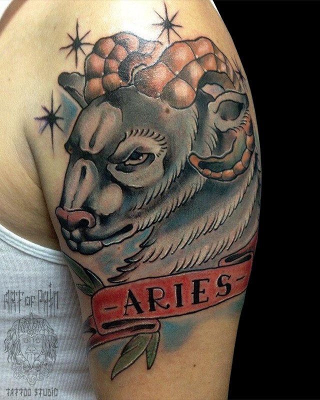 Татуировка мужская нью-скул на плече телец 2222