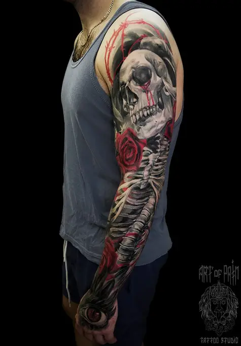 Татуировка мужская black&grey тату-рукав скелет 2259