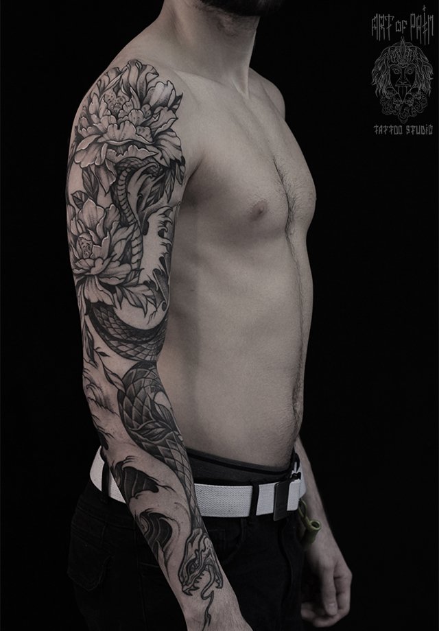 Татуировка мужская графика тату-рукав змея 2315
