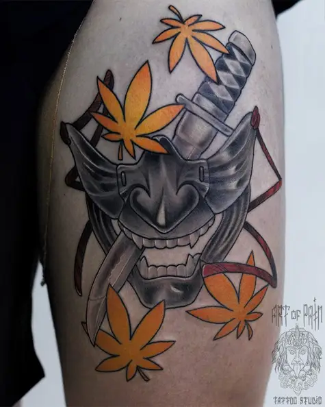 Татуировка мужская япония на бедре маска 2377
