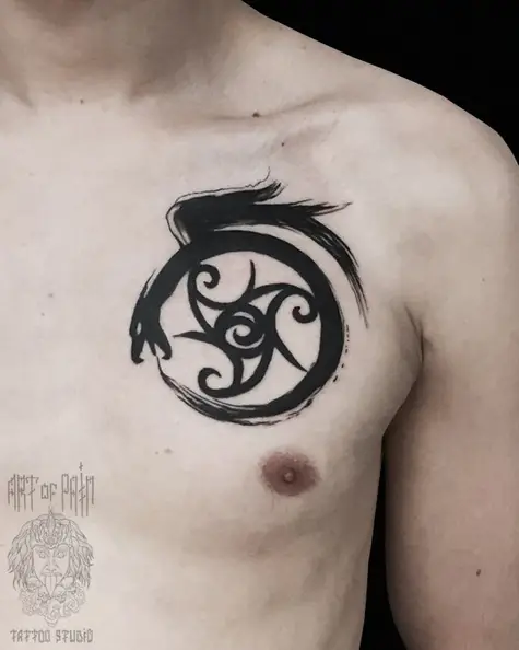 Татуировка мужская графика на груди дракон 2381