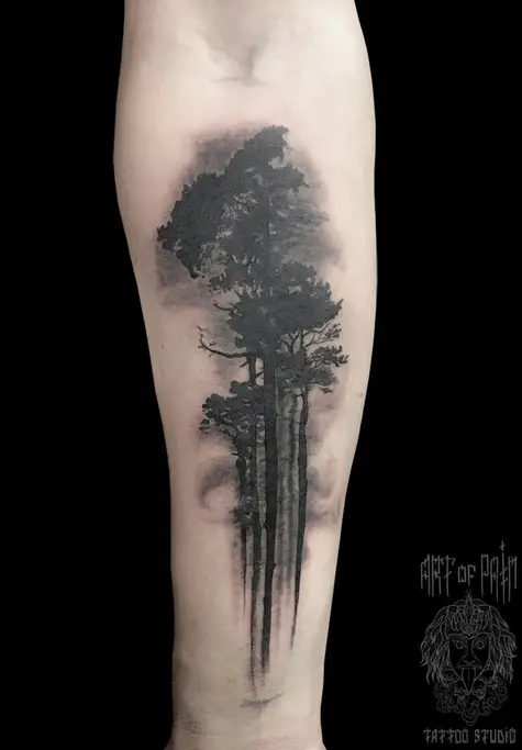 Татуировка мужская black&grey на предплечье деревья (Анастасия Родина) 2405