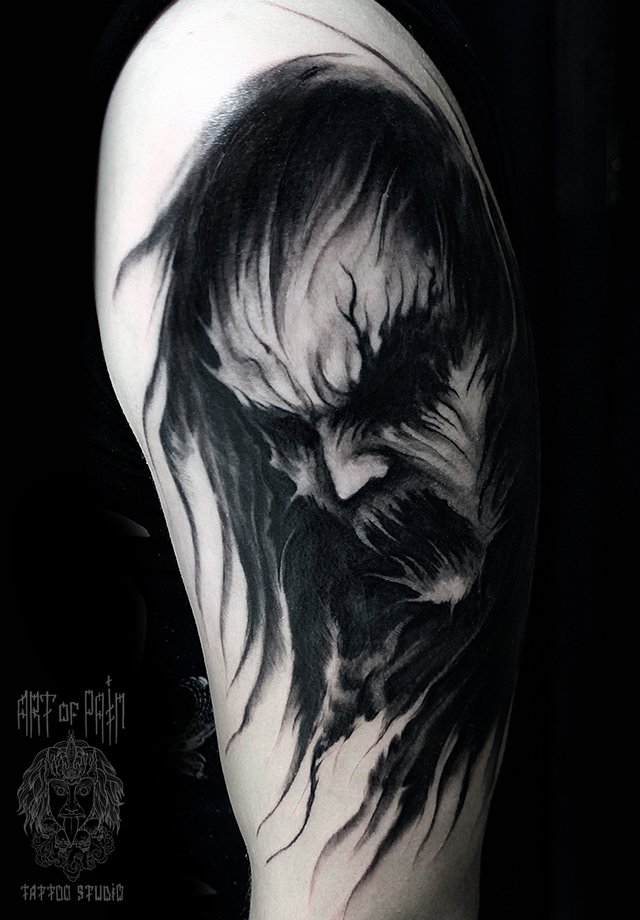 Татуировка мужская хоррор на плече зомби 2446