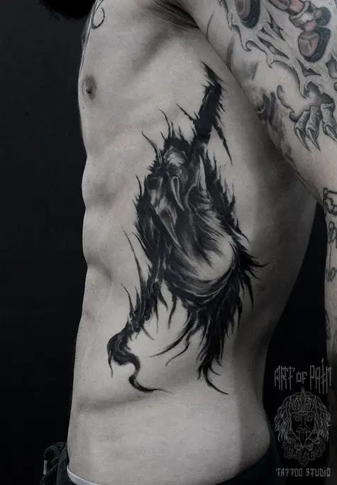 Татуировка мужская хоррор на боку лапа 2462