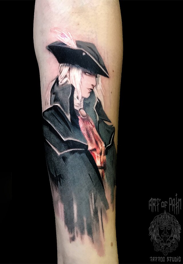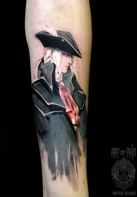 Татуировка мужская нью-скул на предплечье аниме 2501