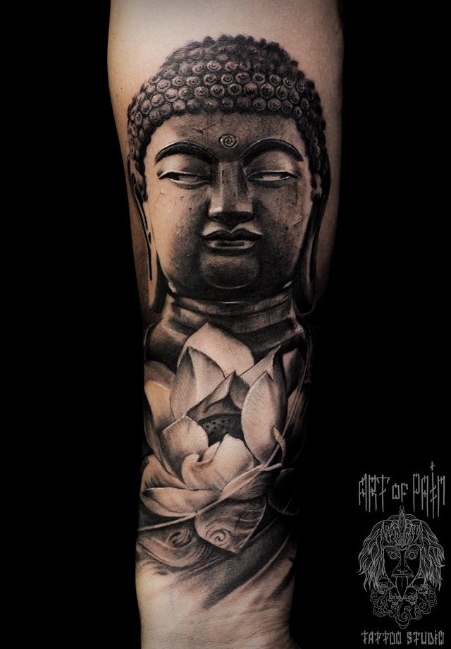 Татуировка мужская реализм на предплечье будда (Слава Tech Lunatic) 2510