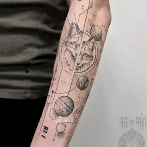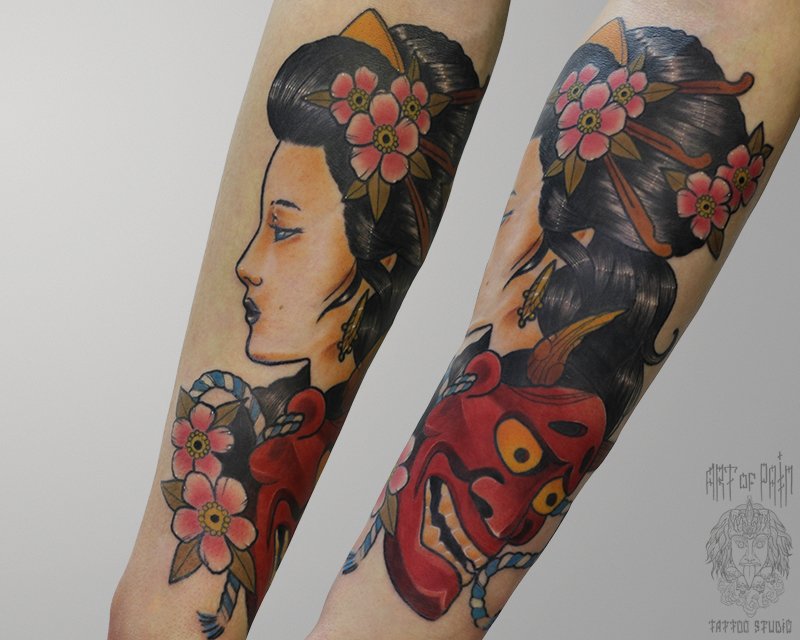 Татуировка мужская япония на предплечье гейша и ханья 2538