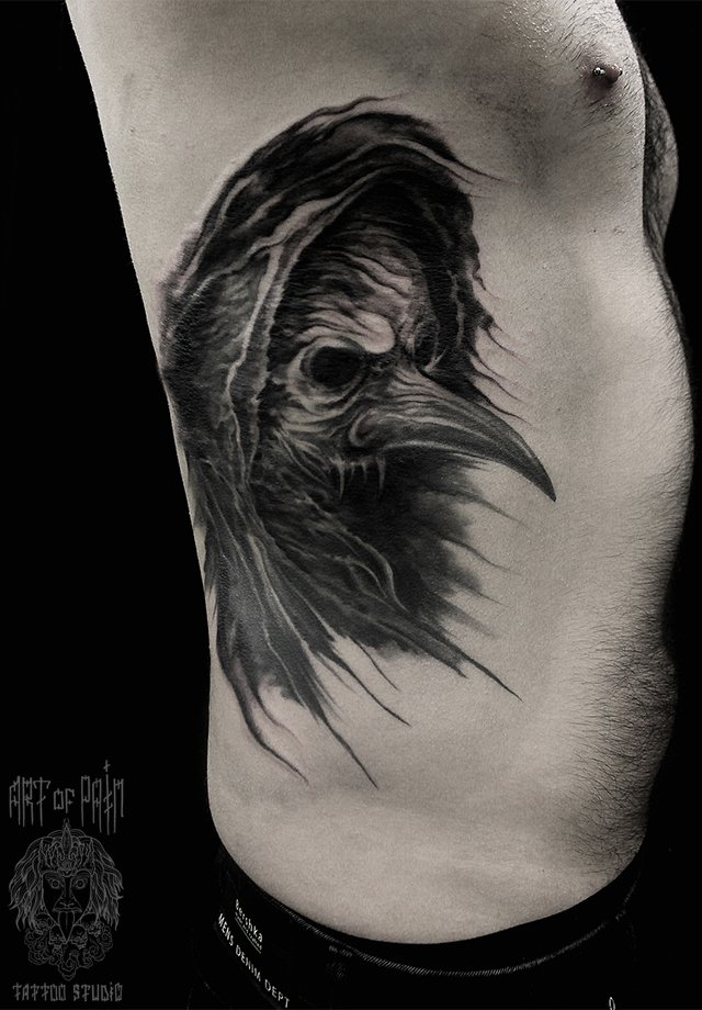 Татуировка мужская хоррор на боку монстр 2668