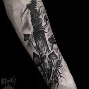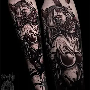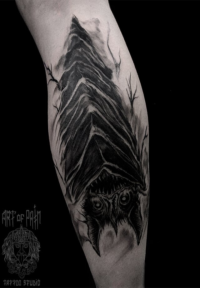 Татуировка мужская хоррор на голени летучая мышь 2709
