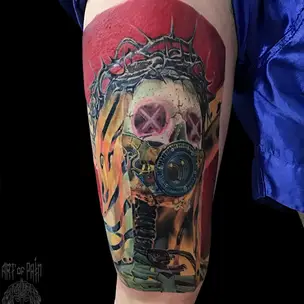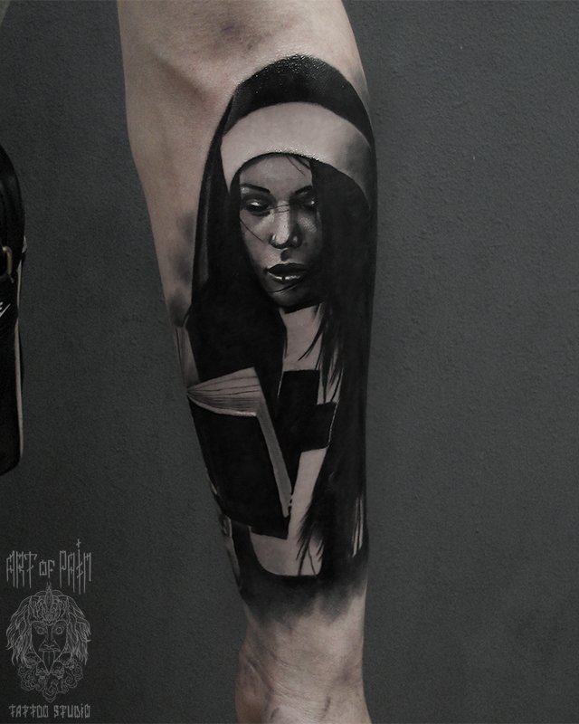 Татуировка мужская хоррор на предплечье монашка (Александр Pusstattoo) 2880