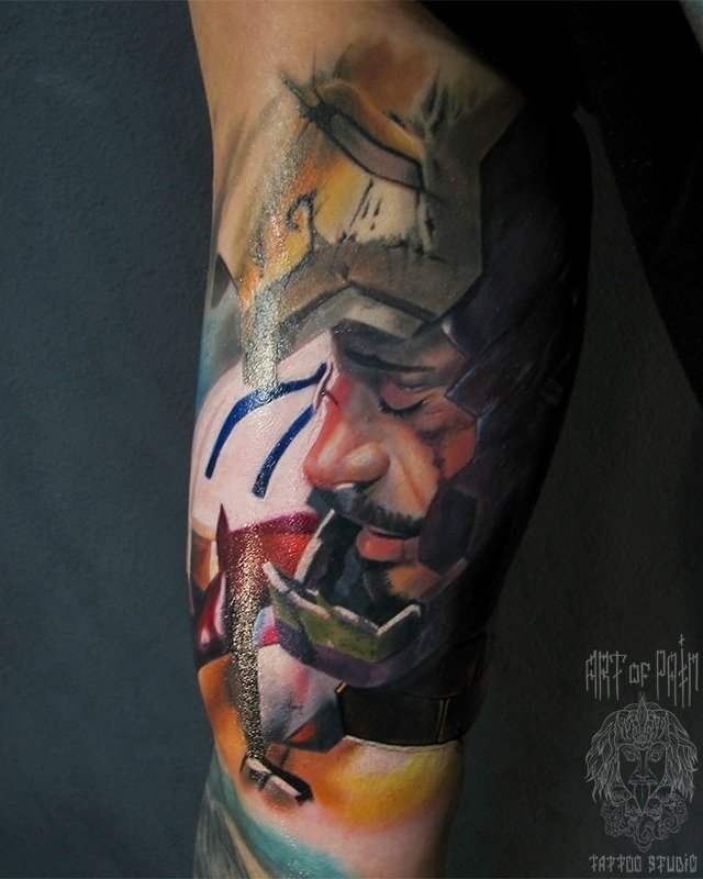 Татуировка мужская фентези на руке железный человек (Александр Pusstattoo) 2902
