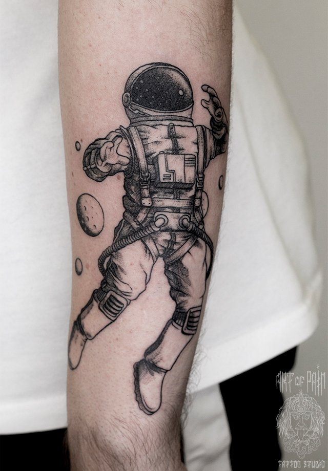 Татуировка мужская графика на предплечье космонавт (Анастасия Родина) 2910