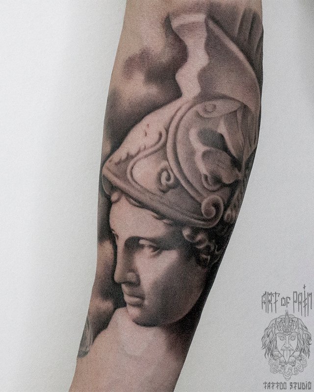 Татуировка мужская реализм на предплечье Афина 2990