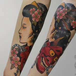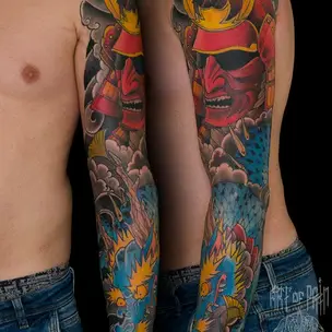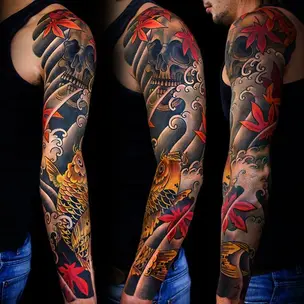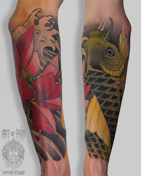Татуировка мужская япония на предплечье карп и лотос 3022