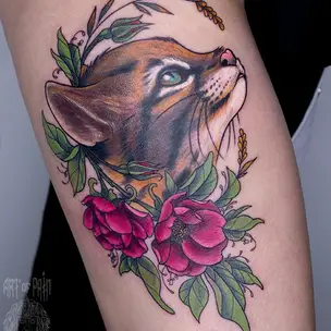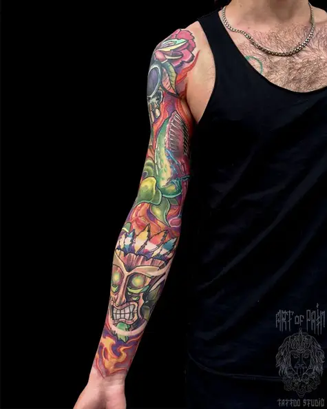 Татуировка мужская нью-скул тату-рукав растения (Юрий Хандрыкин) 3037