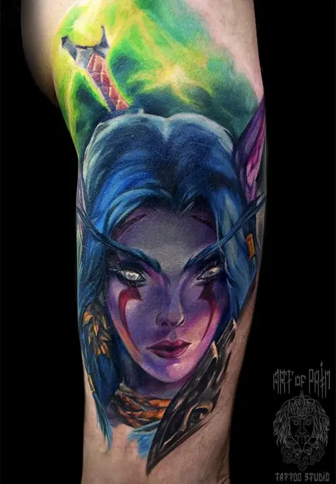 Татуировка мужская фентези на плече эльф 3106