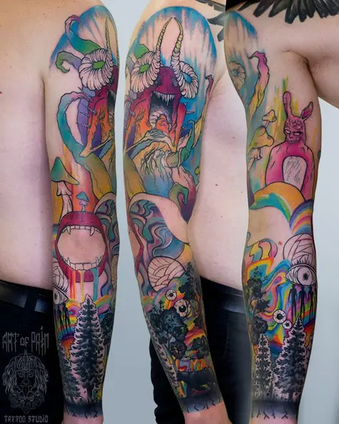 Татуировка мужская нью-скул тату-рукав кислота 3108