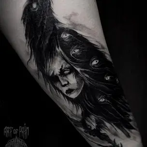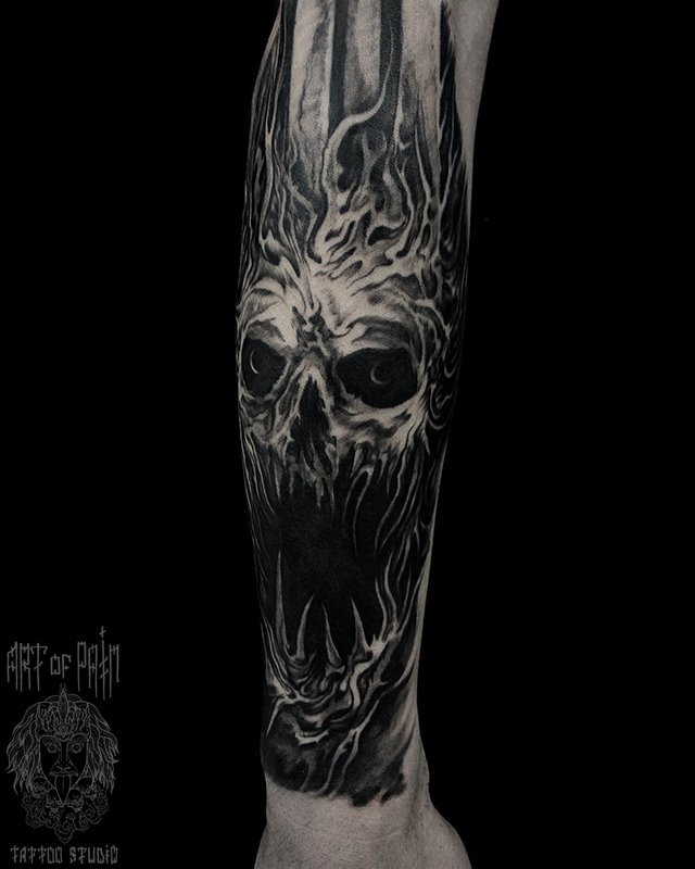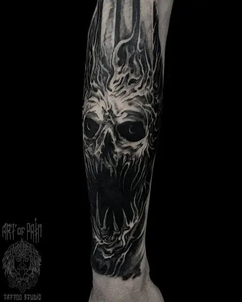 Татуировка мужская хорор на предплечье монстр 3115