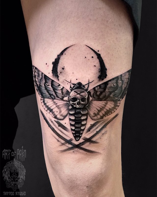 Татуировка мужская реализм на бедре мотыль (Анастасия Юсупова) 3186