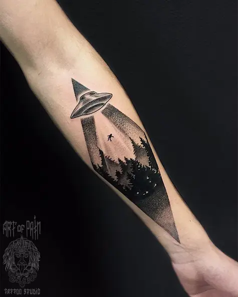 Татуировка мужская графика на предплечье нло (Анастасия Юсупова) 3216