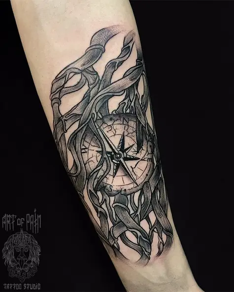 Татуировка мужская графика на предплечье компас (Анастасия Юсупова) 3227