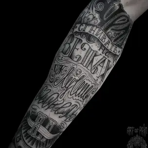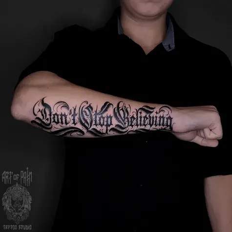Татуировка мужская каллиграфия на предплечье надпись Don't stop believing (Анастасия Юсупова) 3307