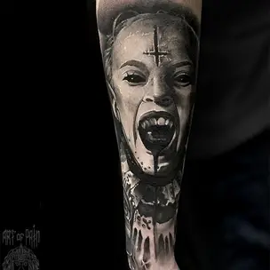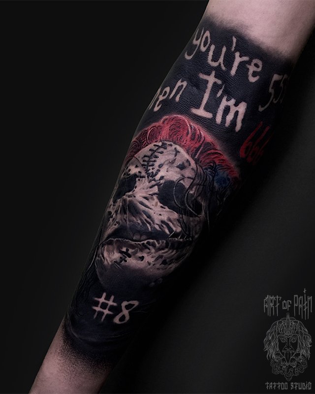Татуировка мужская хоррор на предплечье маска (Анастасия Юсупова) 3384