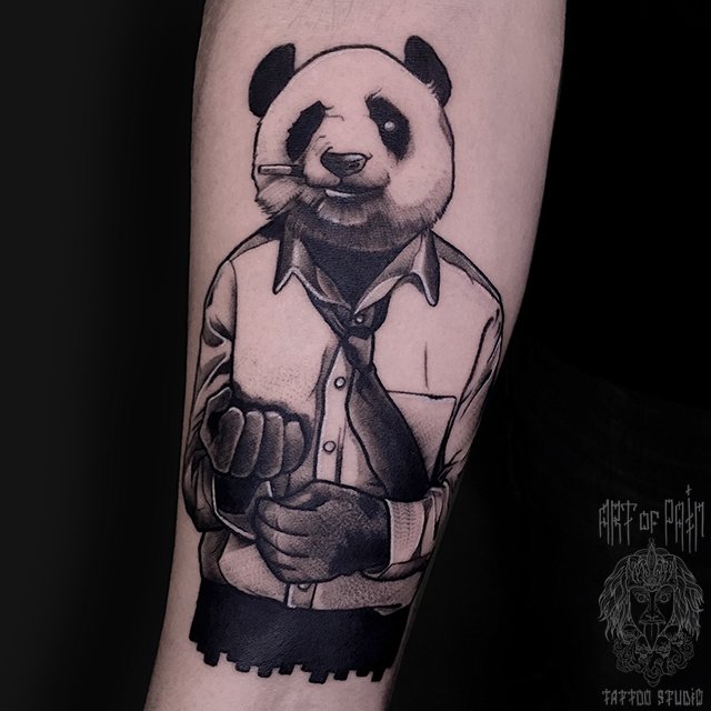 Татуировка мужская графика на предплечье панда (Анастасия Юсупова) 3385