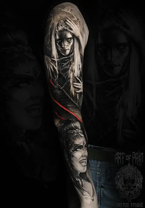 Татуировка мужская реализм тату-рукав темный эльф мистика (Слава Tech Lunatic) 3425
