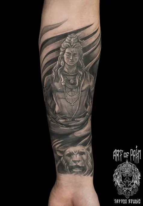 Татуировка женская реализм на предплечье будда 357