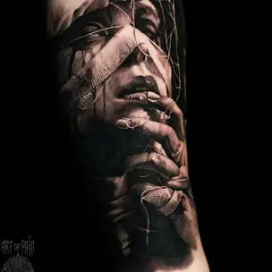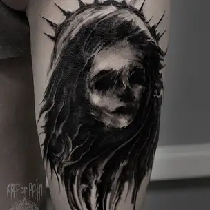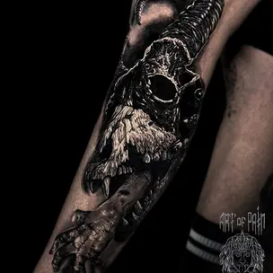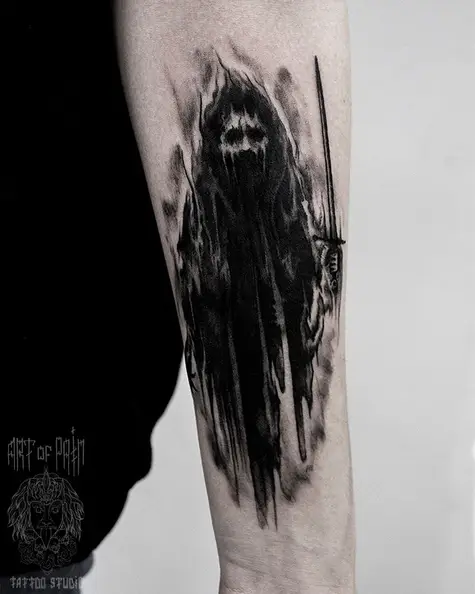 Татуировка мужская хоррор на предплечье призрак с мечом 3657