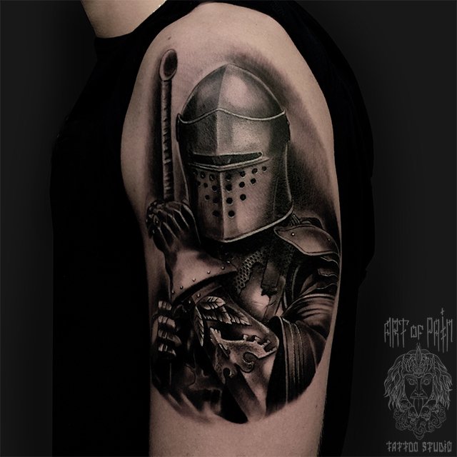 Татуировка мужская реализм на плече рыцарь (Анастасия Юсупова) 3666