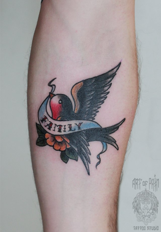 Татуировка мужская олд скул на предплечье ласточка (Анастасия Родина) 3688