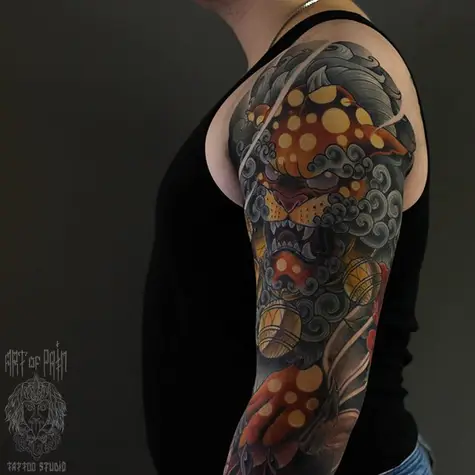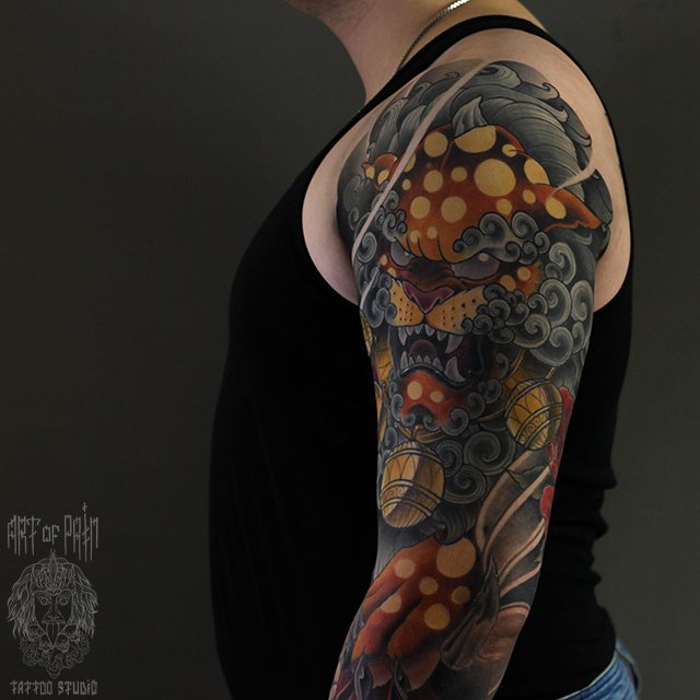 Татуировка мужская япония на плече лев 3740
