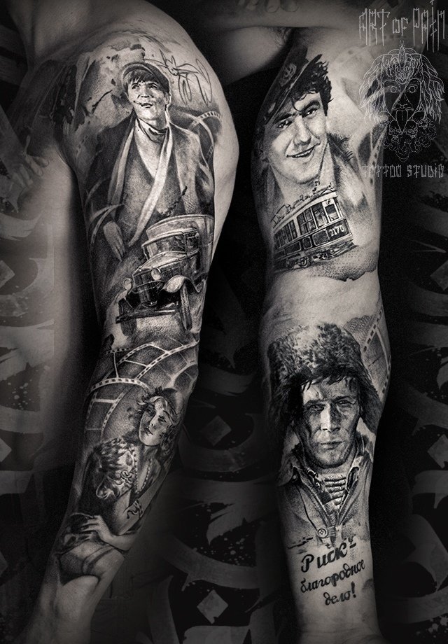 Татуировка мужская реализм тату-рукав персонажи кино (Слава Tech Lunatic) 3749