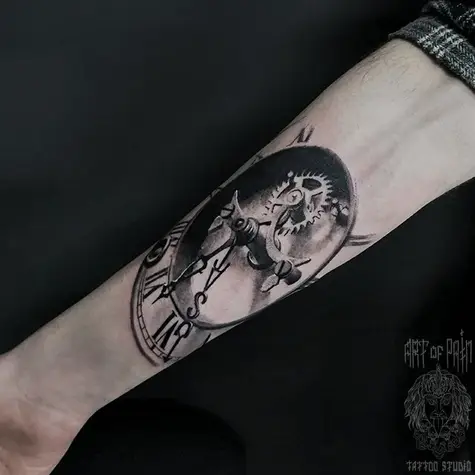 Татуировка мужская реализм на предплечье часовой механизм 3752