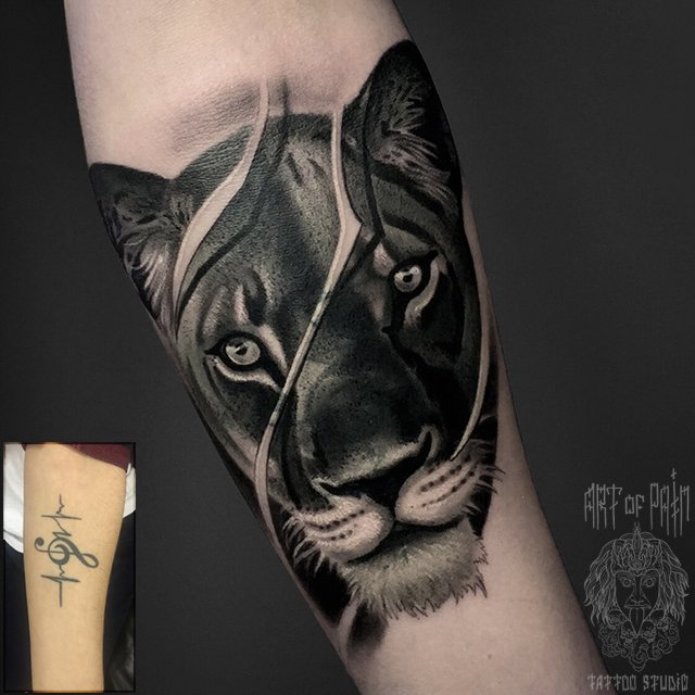 Татуировка мужская реализм на предплечье кавер пантера (Анастасия Юсупова) 3756