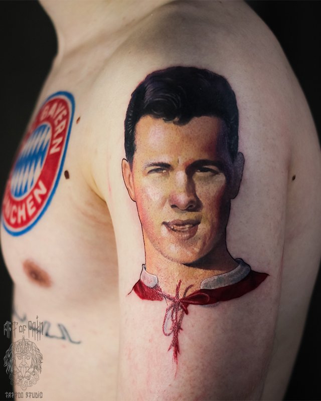 Татуировка мужская реализм на плече портрет 3777