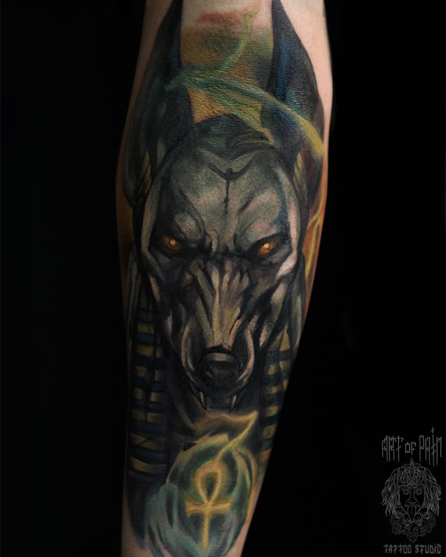 Татуировка мужская фентези на предплечье Анубис 3811