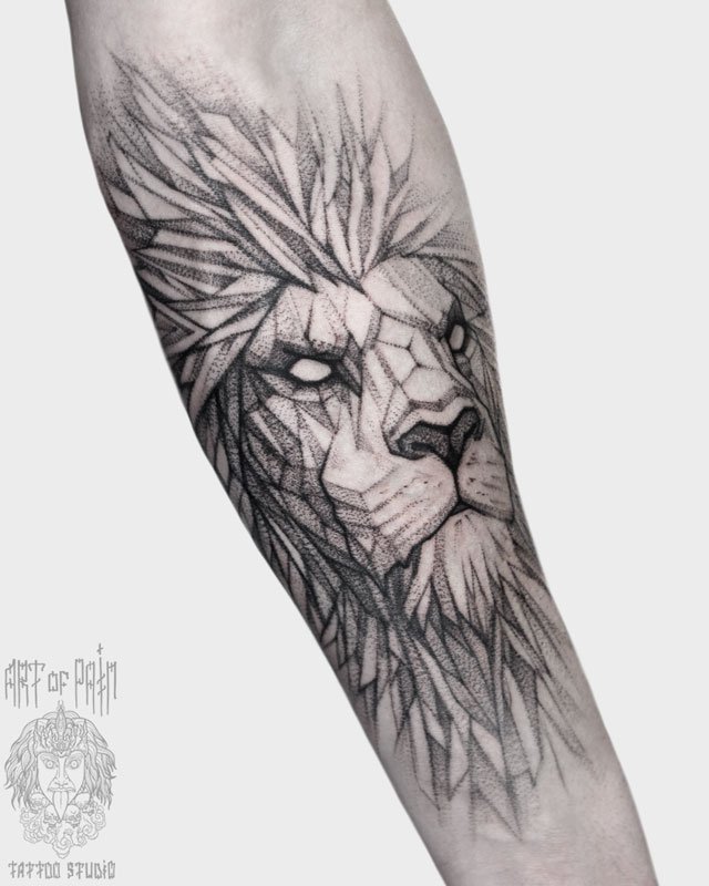 Татуировка мужская графика на предплечье лев геометрия 3875