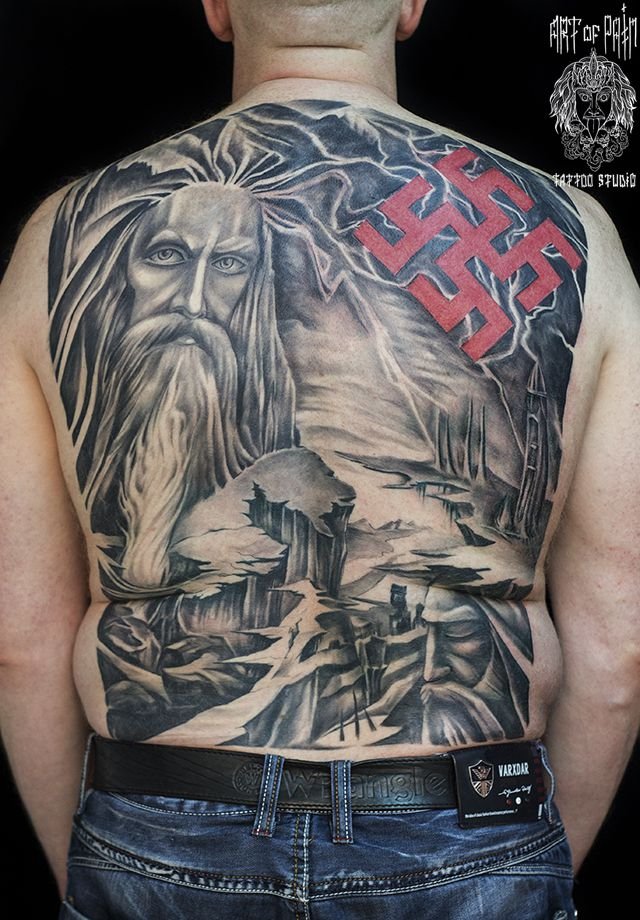 Татуировка мужская фентези на спине славянская 388