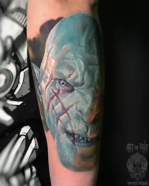 Татуировка мужская фентези на предплечье орк Азог 3902
